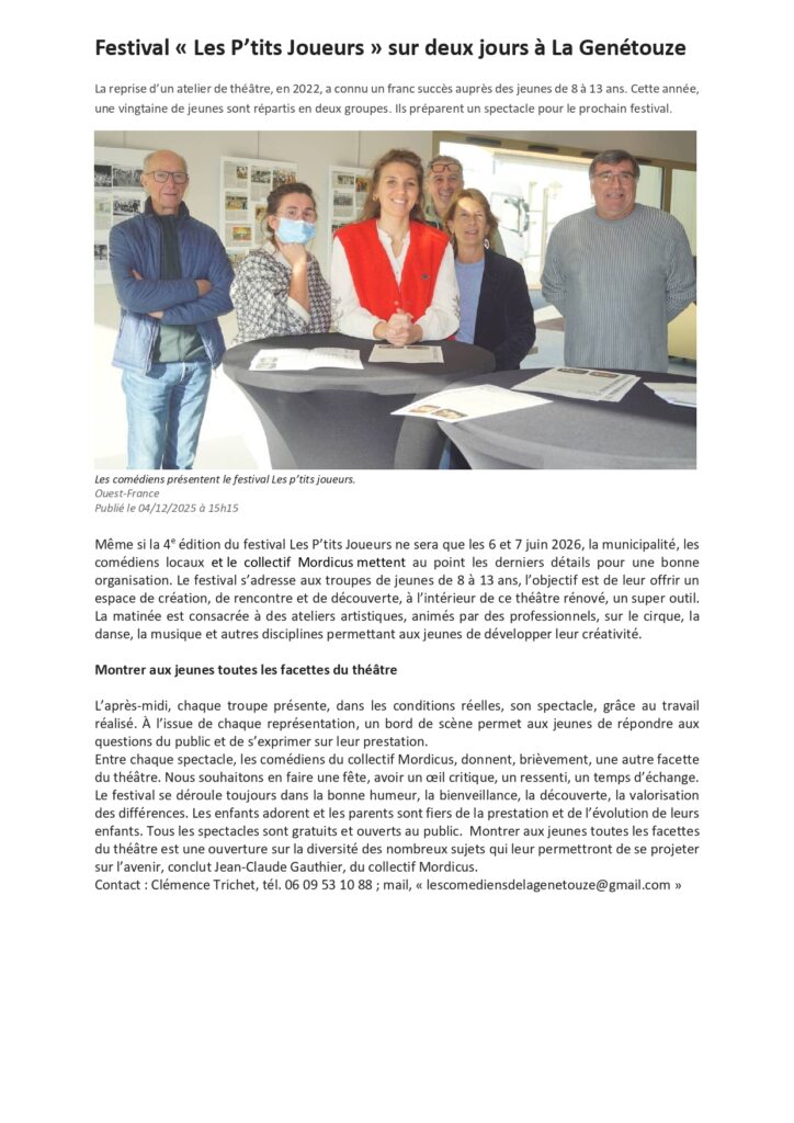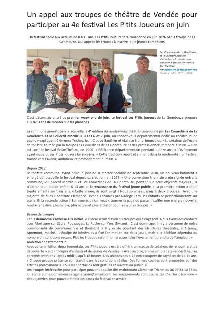 Article Ouest France du 4 décembre 2018Article Ouest France du 20 février 2019Article Ouest France du 8 février 2022Article Ouest France du 2 Février 2023Article Ouest France du 4 janvier 2024Article Ouest France du 18 janvier 2024Article Pays Yonnais du 25 janvier 2024Article Ouest France du 31 janvier 2024Article Ouest France du 13 février 2024Article Ouest France du 27 mai 2024Article Ouest France du 2 janvier 2025Article Pays Yonnais du 27 février 2025Article Ouest France du 4 mars 2025Article Ouest France du 15 mars 2025Article Ouest France du 21 mars 2025Article Ouest France du 4 décembre 2025Article Pays Yonnais du 3 décembre 2025